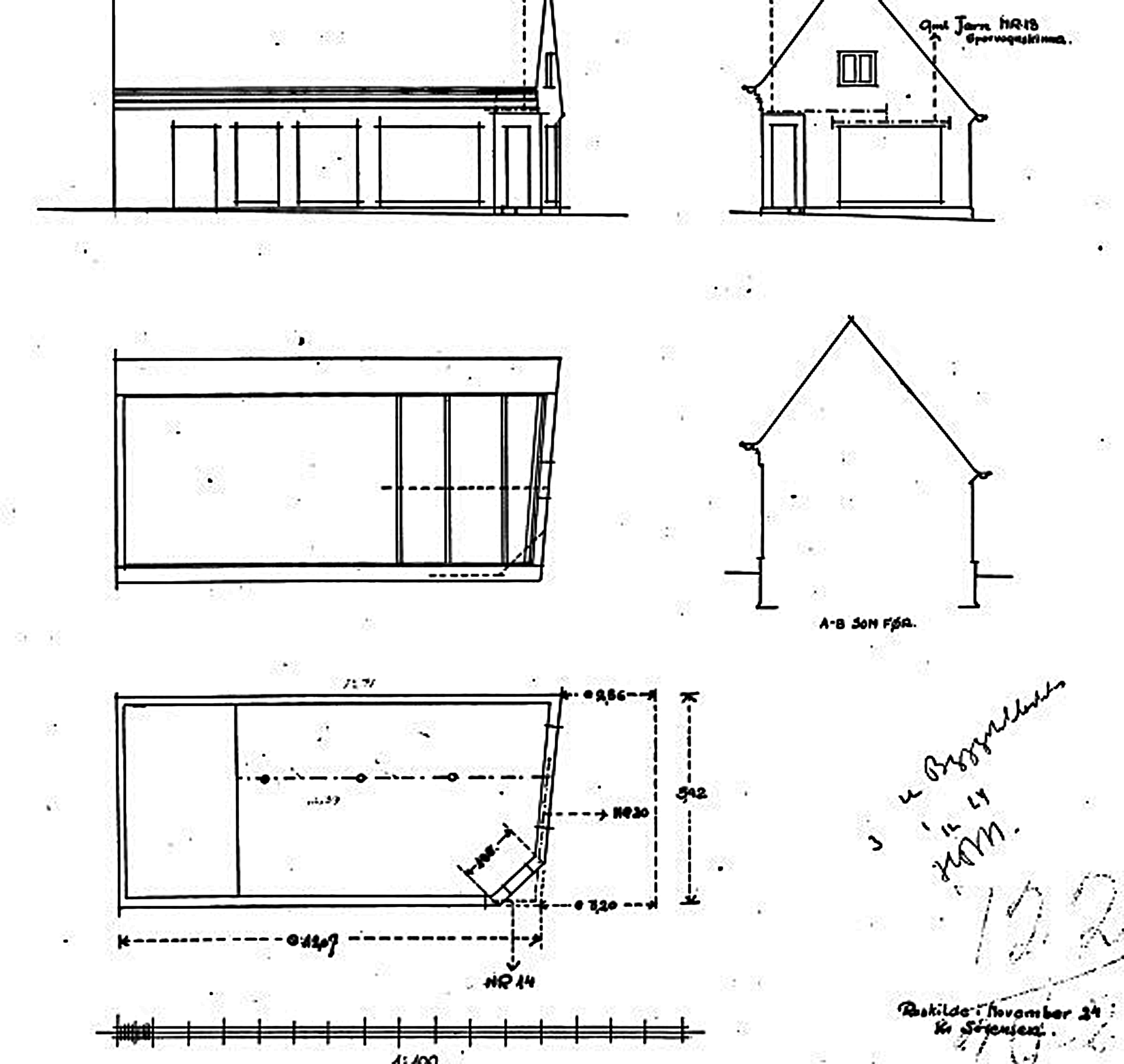 Han havde bl.a. en plan om at udgrave kælderen - en plan som blev accepteret, men da han samtidig ville bygge en 1. sal på ejendommen blev det til et afslag. Det var lige efter afslutningen af 2. verdenskrig, så begrundelsen var mangel på materialer, som i en del år var rationeret.